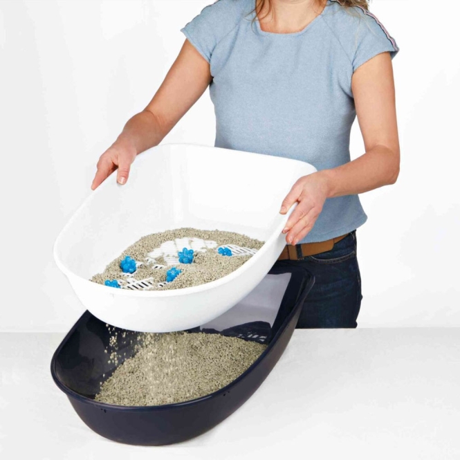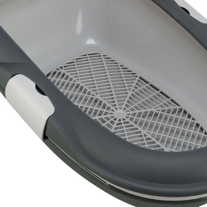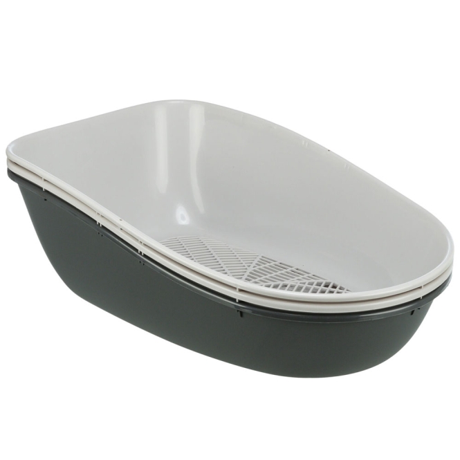 Die Katzentoilette Berto besteht aus drei Teilen - 2 Unterschalen und 1 Siebeinsatz für ein schnelles und einfaches Reinigen.